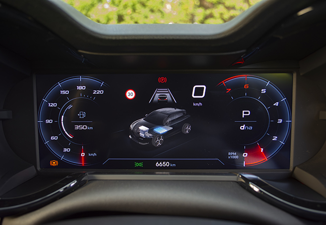 走行モードは3種類。ワインディングを走る場合は、DNAセレクターでD=Dynamicを選択するのがベターだ。走りがより活き活きとするとともに、メーターパネルの表示やアンビエントライトの色も変わる。