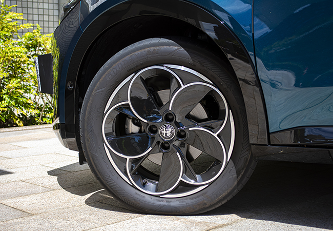 足元の215/55R18サイズのグッドイヤーのエフィシェントグリップが、いい仕事をしている。基本的にはエコタイヤだが、グリップは十分で音もそれほど気にならない。もちろんハンドリングのよさをスポイルすることもない。