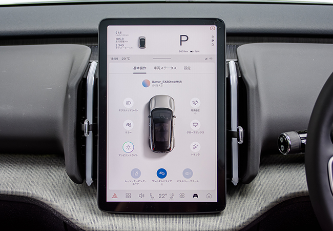 ドライバー正面に一切の計器は存在せず、センターディスプレイの上部に控えめながら速度を表示したり、物理スイッチのほとんどを廃止し、スマホ感覚の操作系を構築したのも、そう考えると理解できる。誰もがイージーに、使い慣れると便利に使えるツールを目指しているように感じた。