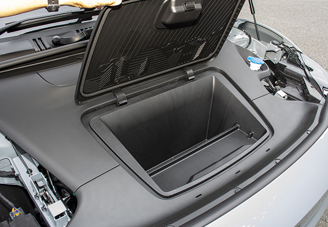 海岸沿いのバイパスの流入で、アクセルを深く踏み込む。ツインモーターは、猛烈な勢いでダッシュした。しかも無音でだ。その速さはやはり圧巻。周囲のクルマを一瞬で置き去りにする。しかも駆動力は緻密に制御され、危なげなところは皆無。ちょっぴり荒れた路面でもじゃじゃ馬にはならない。