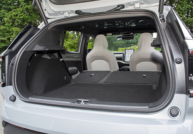 シンプルな室内も同様である。明るくクリーンな造形がインテリジェントな雰囲気だが、スポーツドライビングを楽しむ空間、という尺度で見るとプレーンすぎる。シートのサポート性もそこそこ。正直、本当に0→100km/h加速を3.6秒でクリアするスーパーBEVなのだろうか? というのが実感だ。