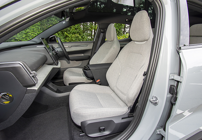 システムはフロント156ps、リア272psの2モーターAWD。総電力量69kWhのバッテリーを搭載し、一充電走行距離は535kmをマークする。ちなみに内外装は、20インチサイズの大径タイヤが存在感を発揮する以外は、他のEX30と共通。スポーティな「走りの演出」は施されていない。その意味では、ハイパフォーマンスを周囲にアピールしない究極の「羊の皮を被った狼」といっていいかもしれない。