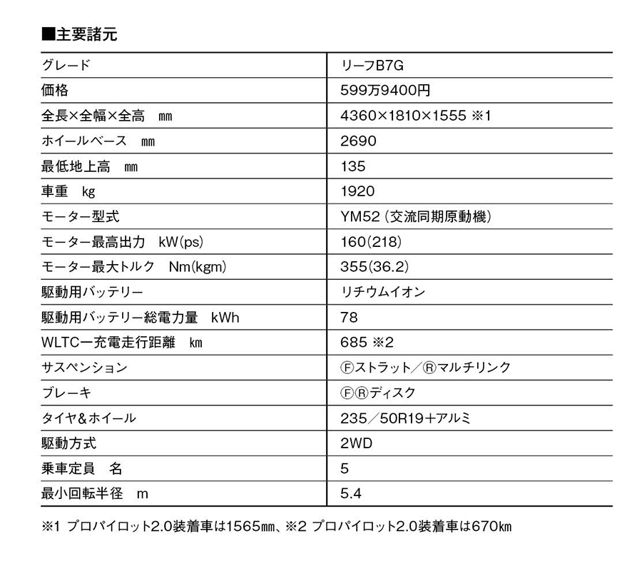 まず日本でベールを脱いだのは78kWhバッテリーを搭載したB7シリーズで、グレードは標準のX(518万8700円)と、上級版のG(599万9400円)の2種。ともにプロパイロットをはじめ装備は充実しており、Xが18インチ、Gは19インチタイヤを装着するのが相違点。一充電当たりの走行距離は、Xが702km、Gは685kmと十分なレベルを達成している。