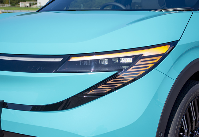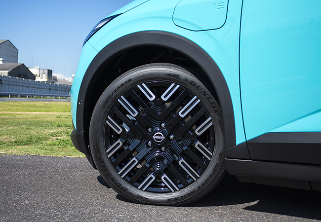 実車と対面すると、ガラリと変わったデザインに目が釘づけになる。2BOXのハッチバックスタイルから一転して、アリアのコンパクト版のような先進クロスオーバースタイルとなった。空力向上のためファストバック化されるとともに、全長が2代目比で120mmも短くなったことで、凝縮感のある独特の雰囲気をまとっている。