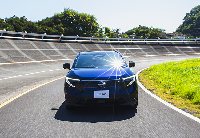新型リーフのプロトタイプに、追浜のグランドライブで試乗した。走り始めてすぐに感じたのは、パワートレーン自体の進化だ。乗りやすく、静かで振動もない。これまで見受けられたモーターが発するキーンという電気的な音が、新型では聞こえなくなっていた。