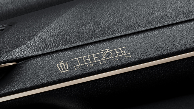 インテリアについては、特別内装色のブラックラスターを基調に、“THE 70th”ロゴを入れたプレミアムシフトノブやインストルメントパネル(専用レーザー加飾)、クラウン専用キー、プロジェクションカーテシイルミを特別装備する。さらに、リサイクルレザーを使用したマニュアルケースにも“THE 70th”ロゴを刻印した。