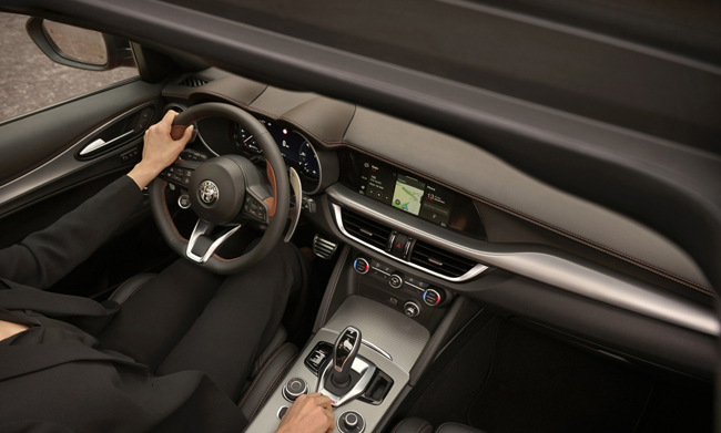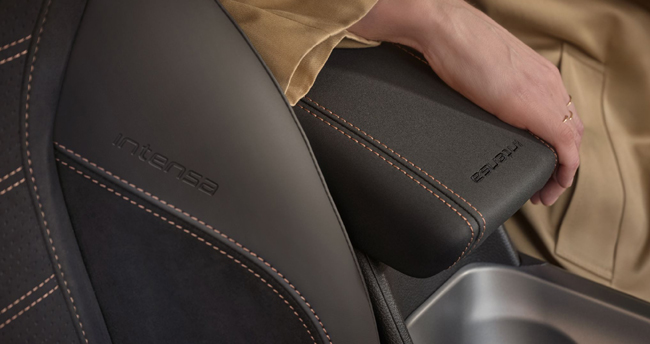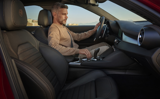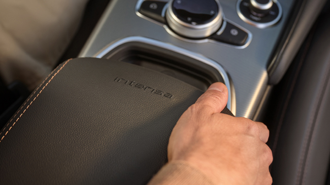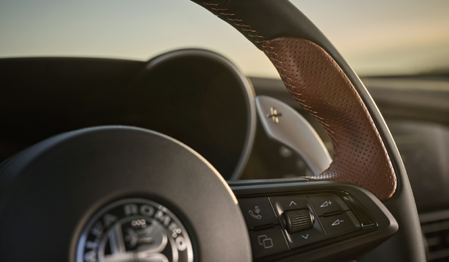 一方でインテリアには、タンカラーアクセントを配したスポーツレザーシート(ブラック)やタンカラーアクセント入りスポーツレザーステアリング、タンカラーステッチおよび“INTENSA”ロゴ入りセンターアームレスト、タンカラーステッチ入りダッシュボード/ドアパネルを採用して、独特のスペシャル感を際立たせる。また、シャシーには走行状況に即してダンピングを最適に電子制御するALFAアクティブサスペンションを配備した。