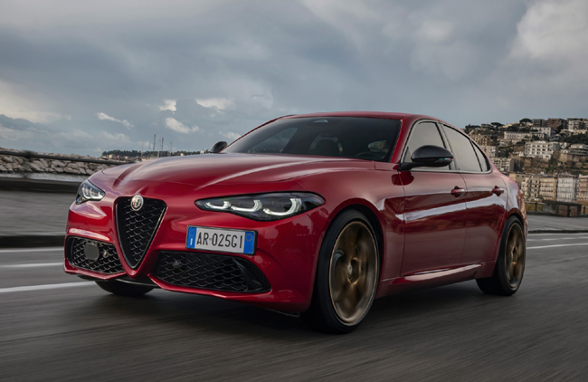 ▲アルファロメオ・ジュリア インテンサ 価格:750万円 全長4655×全幅1865×全高1435mm ホイールベース2820mm 車重1630kg 乗車定員5名 WLTCモード燃費12.1km/リットル 販売台数はエトナレッド(写真)28台/モントリオールグリーン17台/ブルカノブラック28台の計73台限定
