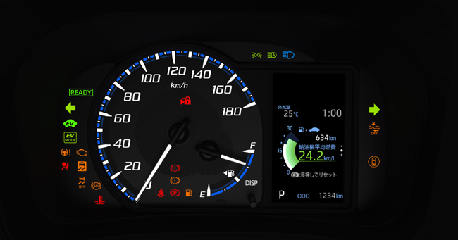 運転席装備の先進化については、メーターのデザイン変更を図るとともに、4.2インチマルチインフォメーションディスプレイを全車に標準装備。また、各操作スイッチを備えた、新しいステアリングホイールを採用する。さらに、バックモニター内蔵式自動防眩インナーミラー(メーカーオプション)とナビ画面表示式(販売店オプション)を選択可能とした。