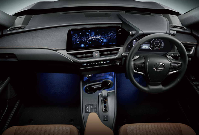 レクサスがコンパクトクロスオーバーのハイブリッドモデル「UX300h」を一部改良。好みの室内空間を演出する64色の室内イルミネーションを新規に採用。“version L”と“version C”のボディカラーにはホワイトノーヴァガラスフレークを追加設定