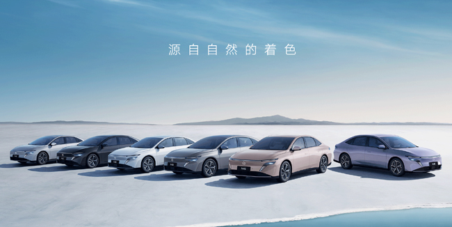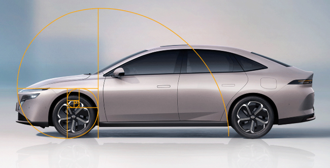 エクステリアについては、“風迹美学(風の軌跡をイメージしたデザイン哲学)”をテーマに据えて、流麗で有機的なラインによる自信と躍動感みなぎるスタイリングを創出。ディテールにも凝り、鷲の翼のように展開するウィンドウィングLEDヘッドライトを配したナチュラルかつアジャイルなフロントマスクや、見た目が最も快く感じられる0.618の黄金比にミニマリストなウエストラインを配したサイドビュー、ダックテール形状の後端と立体的な造形のLEDコンビネーションランプを採用したリアセクションなどによって、どこから見ても印象的かつ存在感あふれる新進のセダンスタイルを具現化した。ボディサイズは全長4831×全幅1885×全高1491mm/ホイールベース2815mmに設定。ボディカラーは中国の自然をテーマにした6色をラインアップする。エアロダイナミクス性能も重視し、空気抵抗係数(Cd値)はクラストップレベルの0.248を実現した。