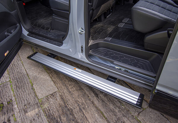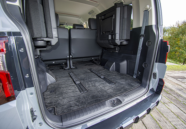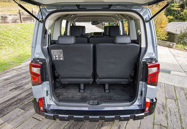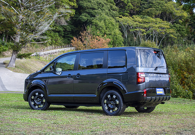 内外装も一段と精悍に一新。エクステリアはフロントグリルと前後バンパー、18inアルミを一新。さらにホイールアーチモールを追加することで存在感を高めた。室内では8inカラー液晶メーターを採用。さらに撥水機能付きシートを装備することでアウトドアユースでの利便性を計算。なお2列目はキャプテン形状のセパレート式(定員7名)とベンチ形状(同8名)から選べる。安全・運転支援機能はパーキングセンサーを新設定。さらにマルチアラウンドモニターの機能充実で安心感が増している。