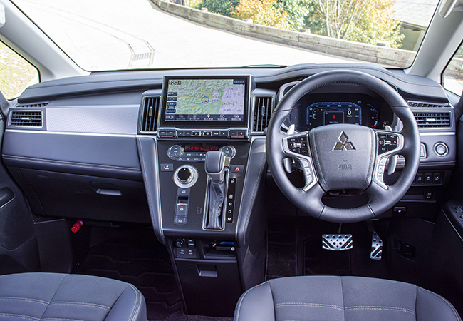 三菱デリカD:5 P/価格:8SAT 494万4500円。最新モデルはFマスク/前後バンパー/18inアルミを一新。さらにフェンダーアーチモールでタフな印象を高めた。機能面は三菱独自の4輪制御技術“S-AWC“の採用で走破性をアップ。走行モードはダイヤル切り替え式。2列目シートは写真のベンチとキャプテン形状が選べる