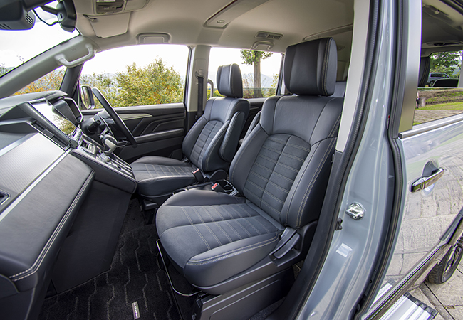 新型の注目ポイントは、走破性のさらなる向上。三菱独自の4輪制御技術“S-AWC“を新採用し、悪路を含め、優れた直進性と意のままの操縦性を実現した。さらにノーマル/ECO/グラベル/スノーの4つのドライブモードとヒルディセントコントロールを設定。トータルなパフォーマンスを高めている。パワートレーンは従来と共通の2.3ℓディーゼルターボ(145ps/380Nm)と8速ATの組み合わせ。ボディは頑丈な環状骨格構造。駆動方式は、もちろん4WDである。