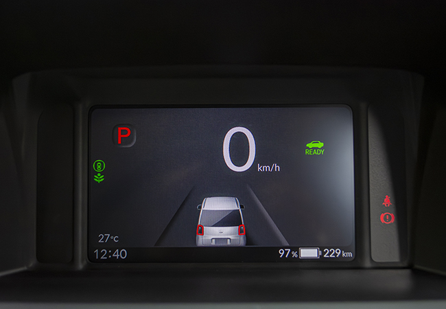 取り回しもバツグンにいい。交差点やコーナーでステアリングを切ると、そのとおり何も気になることなく向きを変える。小柄で軽量な強みと、床下にバッテリーを配置したことで重心が低く、走行安定性に優れることが効いているに違いない。