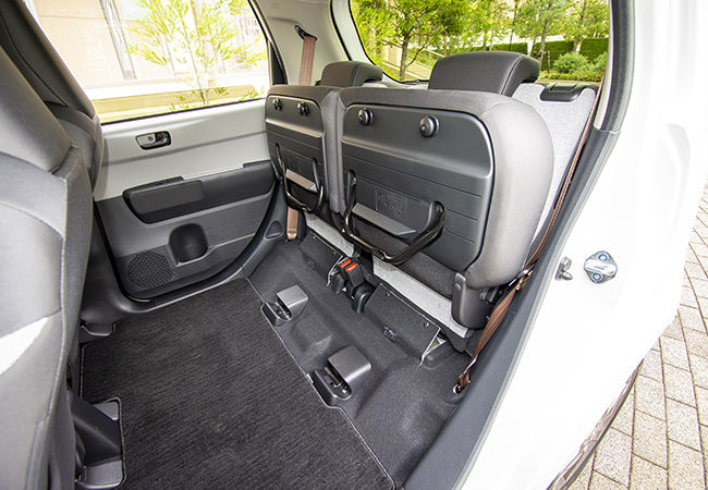 フロア下に搭載されたバッテリーの影響でフロアは微妙に高くなった。それでも乗車位置はN-ONEと同等だから、ヒール段差はやや小さめ。違和感を感じるほどではないが、N-ONEと異なるのは確かだ。