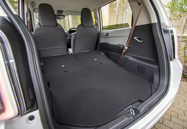 室内は広く快適だ。N-ONE e:は、小さいながらも大人4名が不満なく快適に乗れる。使い勝手も優秀だ。リアシートをダイブダウンして荷室と連続したフラットなスペースを作り出せたり、チップアップ機構で座面を跳ね上げれば背の高い荷物が積める。N-ONEと同等の利便性を持ち、荷室には大きなアンダーフロアボックスもある。