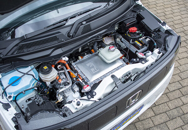 パワートレーンはN-VAN e:と共通。モーター出力/トルクは47kW(64ps)/162Nm、バッテリー容量は29.8kWhだ。注目は一充電あたりの航続距離。N-VAN e:比で大幅に軽量で空力にも優れることから、大幅増の295km(WLTCモード)を達成した。最大のライバル、日産サクラ(同180km)を115kmも上回っている。サクラは近距離用のBEVだが、295kmも走るN-ONE e:なら休日のドライブも安心。1台でオールマイティに使える、と考えていいだろう。