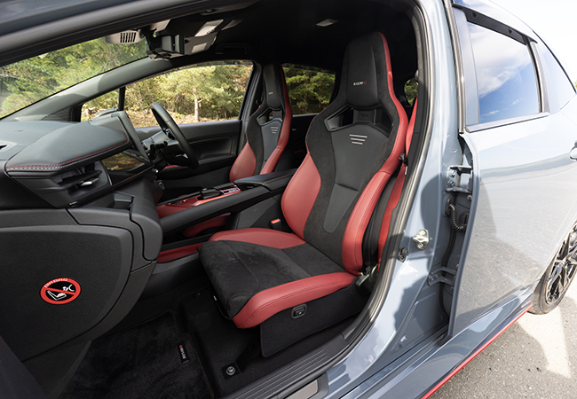 試乗車のS1エンジンは、GT3仕様カムシャフトと専用ECMを組み込んだ試作品。さらにチタンマフラー(50万円)、98万円のドライカーボン製フードを含むフルエアロ、そして最終型T-Specと同仕様のサスペンションを装着。時代を超える完成度を誇っていた。