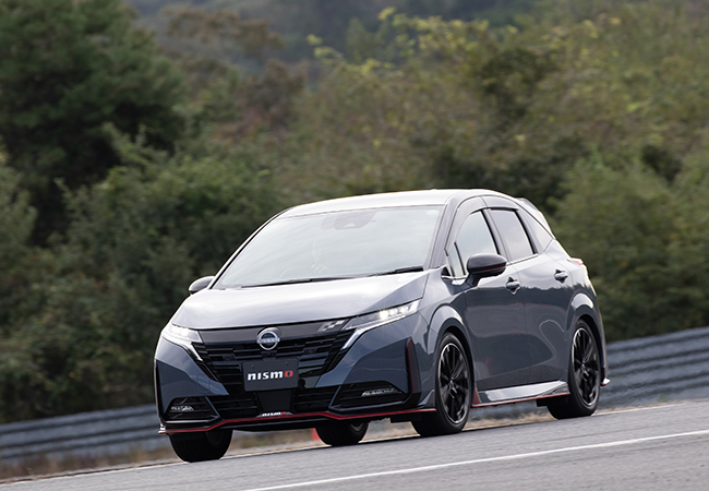 一方、同時に試乗したオーラNISMO tuned e-POWER 4WDは、異なる方向性の速さを見せた。注目は公式ECMチューニング、NISMOスポーツリセッティング TYPE-2だ。6種類のドライブモードを最適化し、Dレンジは加減速をリニアに、Bレンジは回生制御を強化。踏みはじめから鋭く立ち上がる加速が印象的だった。