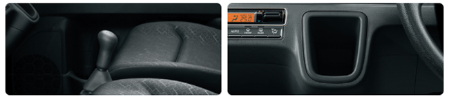 ▲ハイブリッドZXはグラファイトダークグレーのインパネカラーパネルやピアノブラック調のオーディオガーニッシュ、グラファイトダークグレーのフロントドアアームレストなどを専用装備。シートにはファブリック表皮を張る