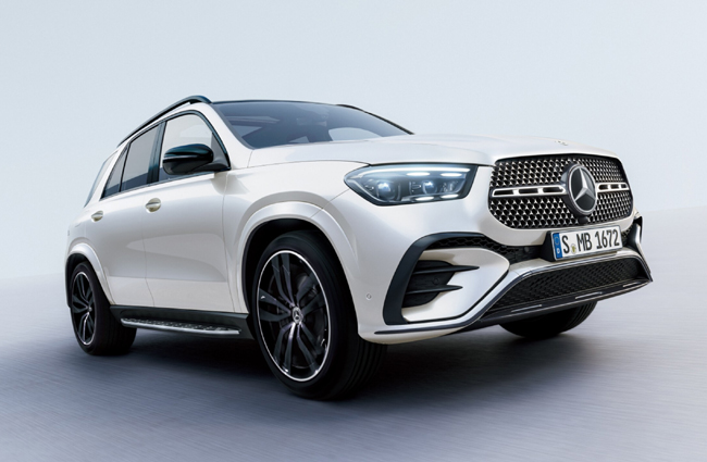 ▲メルセデス・ベンツGLE 450d 4MATIC Sportsナイトエディション 価格:1482万円 全長4925×全幅2020×全高1780mm ホイールベース2995mm 車重2480kg 乗車定員7名 WLTCモード燃費12.4km/リットル 写真のボディカラーはMANUFAKTURオパリスホワイト(メタリック)