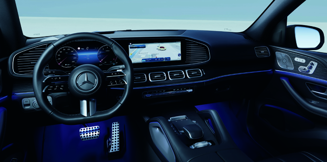 外装については、AMGラインエクステリアやナイトパッケージを標準で採用。ドアミラー、ルーフレール、フロントリップなど随所にあしらったブラックパーツや、フロントグリルなどに配したダーククロームパーツによって、いっそう精悍でエクスクルーシブなスタイルを実現する。足もとには、より力強さを際立たせる23インチAMGアルミホイール(RPK)を組み込んだ。ボディカラーはオブシディアンブラック(メタリック)、MANUFAKTURオパリスホワイト(メタリック)、MANUFAKTURアルペングレー(ソリッド)という3色を設定している。