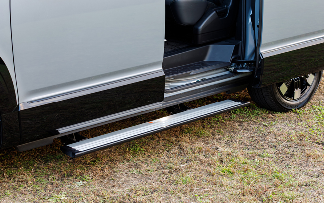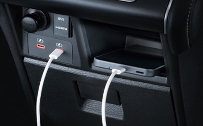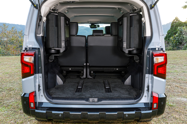 インテリアについては、8インチカラー液晶のディスプレイメーターの採用による視認性の向上のほか、金属調アクセントを施したインストルメントパネルの配備により、先進性に加え、ギア感とプレミアム感を高めたコクピットを創出。また、センターパネルは傷つきに配慮してダークグレーでアレンジしたほか、シートには「CHAMONIX」で好評を博すスエード調素材(撥水機能付)と合成皮革のコンビネーション生地を最上級仕様のPグレードに採用し、合わせてステッチを内装各部同様のカーキ色とするなど、より機能的で統一感のあるキャビン空間に仕立てた。機能面では、センターコンソールとフロアコンソールの下部に充電用USBポートType-Cをそれぞれ2ポート追加し、利便性の向上を果たしている。