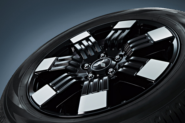 ▲力強さを強調すると同時にギア感を高めた新デザインの18インチアルミホイールを採用。写真・上はPグレードのブラック+切削光輝仕上げ、同・下はG-Power Package/Gのダークグレー仕上げ。タイヤはマッド&スノーの225/55R18サイズを装着