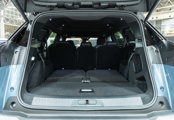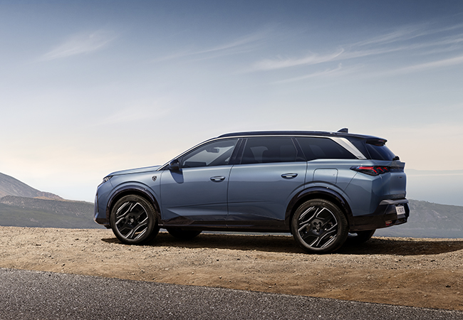 スタイリングは伸びやかで前衛的。リア周りの処理で個性を主張する。ボディサイズは4810×1895×1735mm。3008比で245mm長く、50mm高い。大型化したロングボディはキャビンの居住性向上に貢献。ラゲッジスペースもゆったりとしており、2列目シート使用時で916リッター、3列目使用時でも348リッターの容量を誇る。
