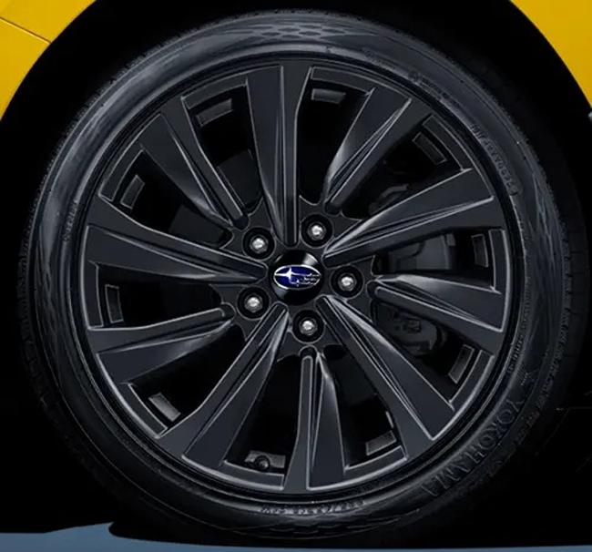 まずボディカラーには、鮮やかな黄色の特別色のサンライズイエロー(5万5000円高)を設定。レヴォークでは通常カラーのセラミックホワイト/クリスタルブラックシリカ/アステロイドグレーパール(3万3000円高)/WRブルー・パール、WRX S4では通常カラーのセラミックホワイト/クリスタルブラックシリカ/ギャラクシーパープルパール(3万3000円高)/WRブルー・パールも選択できる。また、エクステリアにはブラックベゼルのフルLEDハイ&ロービームランプやブラック塗装の電動格納式リモコンドアミラー、ブラック塗装のルーフアンテナ(シャークフィンタイプ)、マットブラック塗装の18インチアルミホイール(タイヤはレヴォーグが225/45R18サイズ、WRX S4が245/40R18サイズ)を特別装備。さらに、レヴォーグにはラスターブラックのLEVORG/シンメトリカルAWDリアオーナメントを装着し、WRX S4にはリアスポイラーをオプション(6万6000円)で用意した。