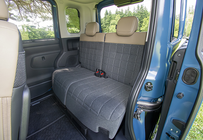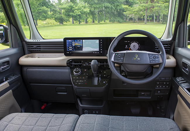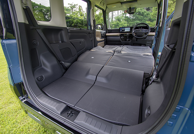 デリカミニは、適度な道具感の演出が見事。「先代でやりきれなかった部分に手を入れ、兄貴分に負けないユーティリティを確保した」と開発陣は胸を張る。確かにサポートバーを意識したという助手席側のトレーは使いやすく、撥水シートや防水ラゲッジも設定されている。