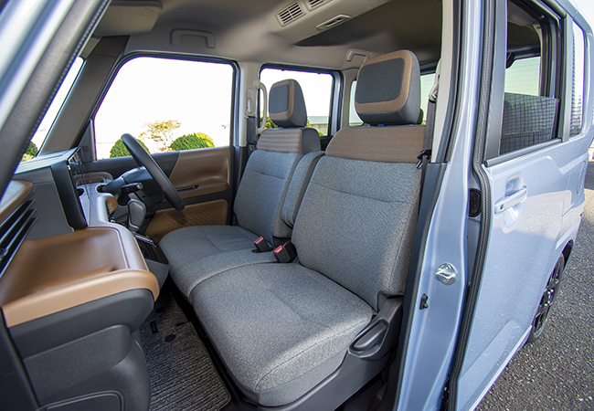2台とも室内は圧倒的に広い。スライドドア開口幅と室内長はクラス最大。これまでどおり後席の子どもをケアしやすいよう運転席から助手席を簡単に前倒しできるようになっているのが特徴だ。そしてデザインや質感に大いにこだわっており居心地は抜群である。まずルークスだが、明るい色調もあってKカーにありがちなベーシックな雰囲気は皆無。収納スペースもこれ以上は考えられないほど充実している。また、それぞれが使いやすいように配慮されている作り込みはさすがだ