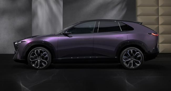 ▲エクステリアのデザインテーマは“FUTURE+SOUL×MODERN”。マツダデザインが追求するエレガントなスタイリングを、新しい生活様式をイメージさせるモダンな造形と融合させた。ボディサイズは全長4850×全幅1935×全高1620mm/ホイールベース2902mmに設定