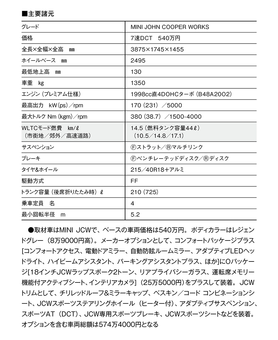 1)ゴーカートフィーリングを核にしながら、乗り心地を大きく改善。刺激的でありつつ日常でも使える“大人のJCW”へと進化