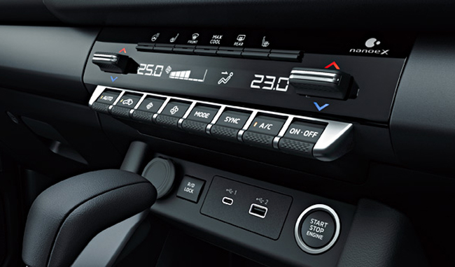 機能装備に関しては、テールゲートアシストを標準装備してテールゲート開閉時の負担を軽減し、荷台の使い勝手を向上。また、肌や髪に潤いを与え、花粉やニオイも抑制するパナソニック製の「ナノイーX」を新たに採用する。車内の空気を循環させるリアサーキュレーターも標準で装備した。内装加飾の一部変更も行い、センターコンソールとインナードアハンドルガーニッシュをダークチタンに刷新して、インテリアの統一感を高めている。