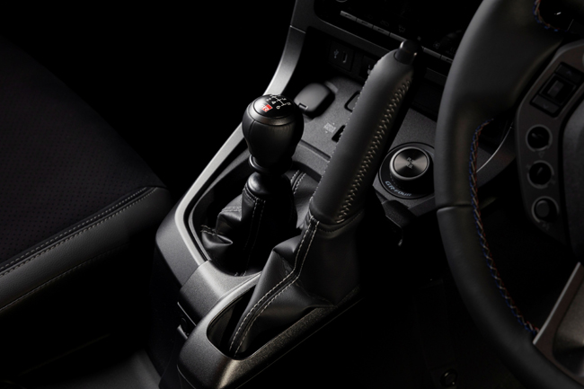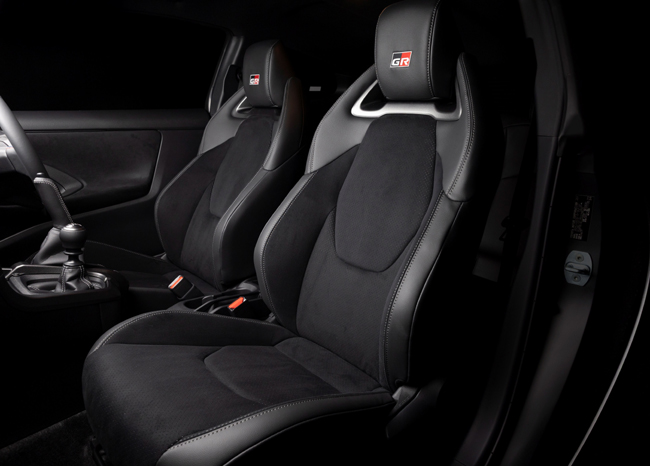 インテリアに関しては、モータースポーツにおける操作性を追求して外形をひとまわり小径化し、同時にラリーからの学びを得て各種ステアリングスイッチを独立した形状としたうえで、トリコロールのステッチを入れた専用ステアリングホイールを装備したことがトピック。また、パーキングブレーキは縦引きを採用し、合わせて専用のグレーステッチ付き革巻グリップを新規に開発して装着する。さらに、SEB.モードおよびMORIZOモードを表示する専用GR Full TFTメーターを配備。インパネにはドライバーズチャンピオン獲得を記念したSébastien Ogier 9x World Champion Edition専用シリアルナンバー入りプレートを貼付した。