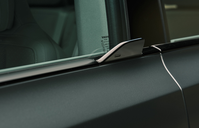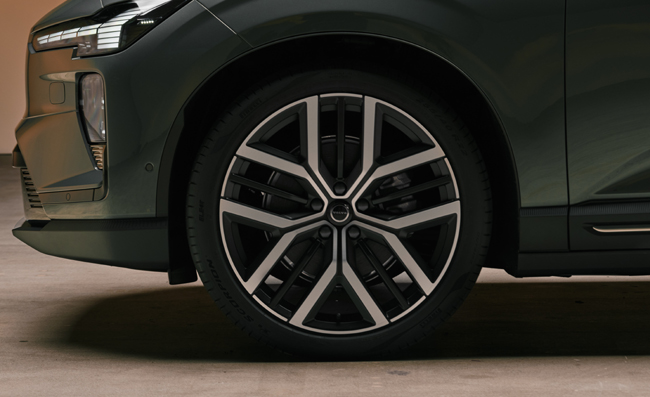 エクステリアについては、機能が形をつくるスカンジナビアンデザインをEV時代に即して新たなアプローチで導入し、自信に満ち、かつスタイリッシュなSUVフォルムに仕立てる。新しいトールハンマーデザインのLEDヘッドランプおよびデイタイムランプやクローズドタイプのグリル、力強い造形の前後バンパー、リアリアウィンドウ左右後端とリアエンドパネルに配したLEDコンビネーションランプ、空力特性を考慮した独特な造形のアルミホイールなども目を引く部分だ。さらに、低く構えたフロントや流れるようなルーフライン、絞り込まれたサイドボディなどによって、空気抵抗係数(Cd値)は0.26という優れたエアロダイナミクスを実現する。ポップアップ式の電子式ドアハンドルの採用も目新しいポイントだ。ボディサイズは全長4803×全幅1899×全高1635mm/ホイールベース2970mmに設定している。