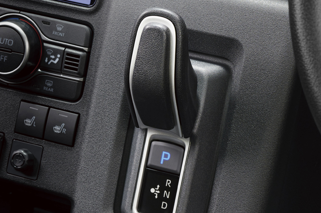▲ブラックの内装色を基調に、フロントセンターアームレストやニードルパンチのフロアマット、メッキインナードアハンドル(フロント)、センターエアコンレジスター(シルバー加飾)、メッキエアコンレジスターノブ(センター)などを標準装備