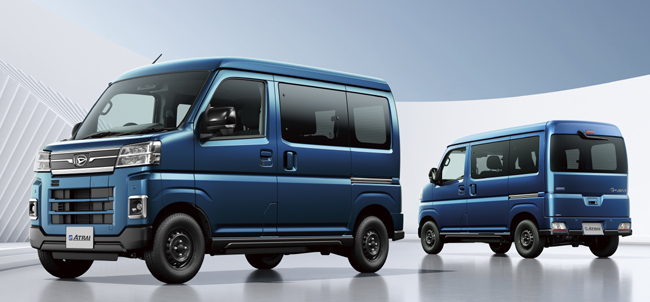 新設定の商用軽バン電気自動車のe-ハイゼット カーゴとe-アトレーは、軽自動車に適した新開発のBEVシステム「e-SMART ELECTRIC」を採用し、部品配置の見直しやボディおよびシャシーを新たに設計することで、室内スペースを変えることなく大容量バッテリーを搭載したことが特徴。シンプル装備のe-ハイゼット カーゴはビジネスをメインとしたモデルに、内外装の質感にこだわったe-アトレーは仕事にもプライベートにも活用できるモデ ルに仕立てる。生産はダイハツ九州の大分(中津)第1工場で実施し、販売目標は2車種合計で月間300台を計画している。