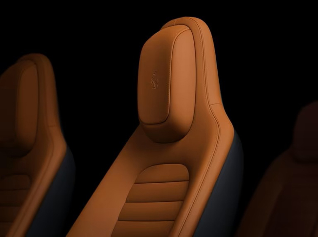 今回の発表では、車名と同時に新設計のインテリアも公開される。米国サンフランシスコでは、フェラーリとデザインを協業した米国のクリエイティブ集団のLoveFromも参加して、ステアリングやディスプレイ類、シートといったコクピットを形成するパーツ単体も披露した。