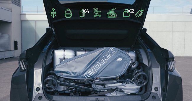 インテリアに関しては、機能性とデザイン性を高次元に融合させたことが訴求点。ダッシュボードからドアトリムへと伸びる水平基調の造形は、キャビン全体をワイドに見せる視覚的効果を生み出し、開放感のあるキャビン空間を形成。また、ダッシュボードからセンターコンソールへ斜めに切れ込む大胆なラインは、収納力と機能性を維持しつつモダンな印象をもたらし、合わせてエアコンの吹き出し口をスリム化してバランスの取れたシームレスなデザインを演出する。さらに、21インチのパノラミックカーブドディスプレイがi-Cockpitと融合して未来的なフローティングデザインを創出するプジョー パノラミックi-Cockpitを採用。機能装備としてプジョーi-Connect Advanced(コネクテッドナビゲーション/ボイスコントロール/ChatGPT/i-Toggle/AM&FMラジオ/USB/Bluetooth)やプジョー ミラースクリーン(Apple CarPlay/Android Auto)を配したほか、eリモートコントロールを専用で組み込んだ。
