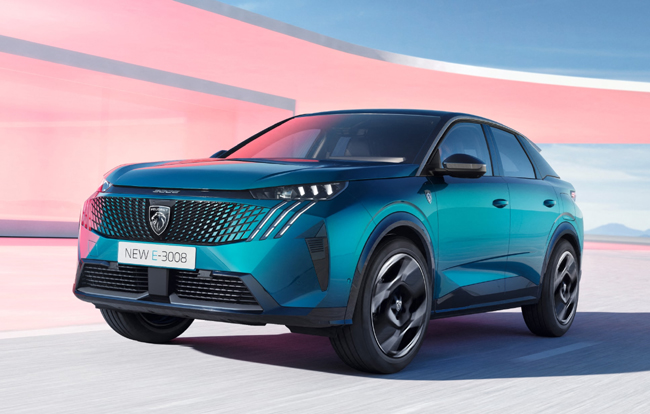 プジョーが新世代フラッグシップモデルの3008に電気自動車の「E-3008」を設定。次世代プラットフォームのSTLA-Mediumを採用したうえで、パワートレインに最高出力157kW/最大トルク343Nmを発生するフロントモーターと、総電力量73kWhを確保したリチウムイオンバッテリーを搭載。一充電走行距離はWLTCモードで604kmを実現