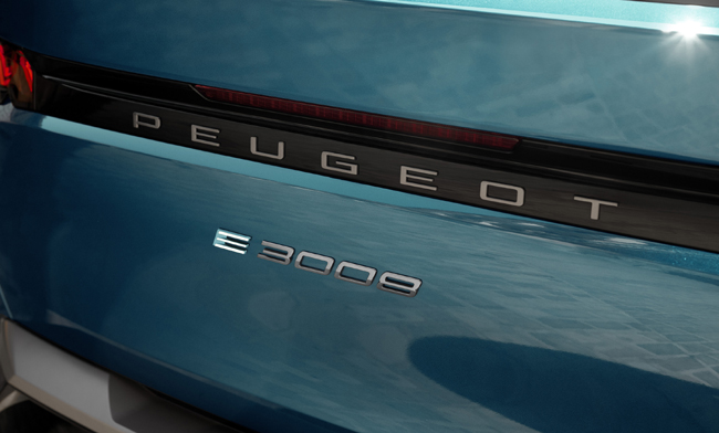エクステリアについては空力性能に優れたクーペフォルムとSUVの力強さを融合した、流麗なファストバックフォルムを基調に、サイドウィンドウモールが表に見えないように設計されたデザインを採用して、フロントからリアに伸びるシームレスなサイドラインを演出する。また、ホイールアーチとサイド下部は既存のハイブリッドモデルのブラック仕上げからシャイニーブラックの塗装仕上げに変更。さらに、リアパネルには専用の“E 3008”エンブレムを配備した。そして、足もとには新造形の19インチアロイホイール[FUJI](タイヤは235/55R19サイズ)を装着する。ボディカラーはオブセッションブルー/インガロブルー/オケナイトホワイト/ペルラネラブラックという4色をラインアップした。