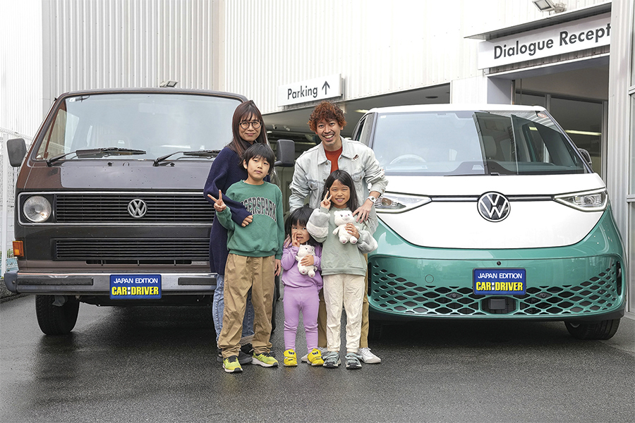 西村泰宏氏の愛車VW ID.Buzzは家族の大切なパートナー。取材時はまだ400㎞ほどしか走行していなかったが、すでに家族全員から大好評。明るく広い室内とBEVならではの静粛性/スムーズさが気に入っているという。今後、西村さんは念願のVWタイプ1ビートルを趣味車として買い足し、楽しむ予定という