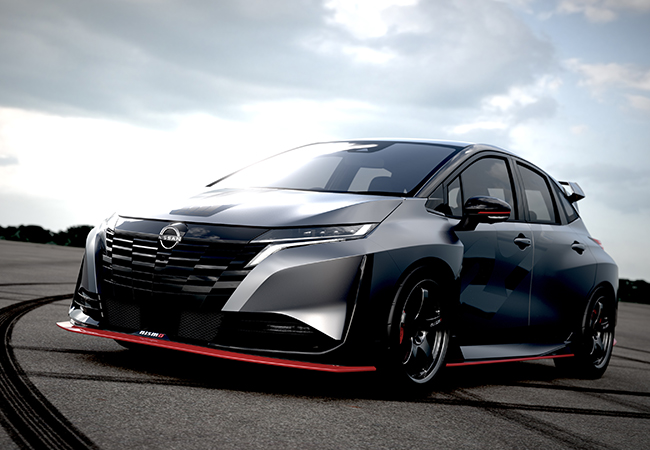 オーラNISMOのファインチューンモデル。X-TRAIL NISMOのパワーユニットを搭載し、独自制御のe-4ORCEを導入。日産らしい鮮烈な電動スポーツ体験を約束する。レースからフィードバックされた空力性能とアグレッシブな造形も魅力。市販化の可能性も高い。