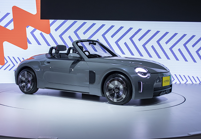 次世代コペンはFRオープンスポーツとして開発中。現在、「作ってみる、乗ってみる、試してみる」の精神でランニングプロトを製作。徹底的な走り込みを実施中。軽量化/低重心/理想の重量配分が開発ポイント。市販に期待が高まる。