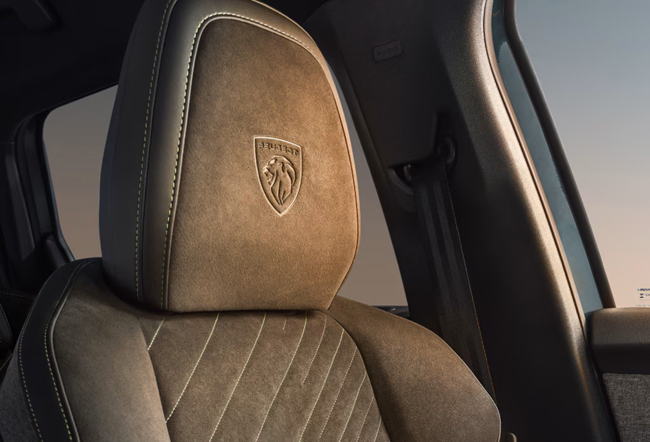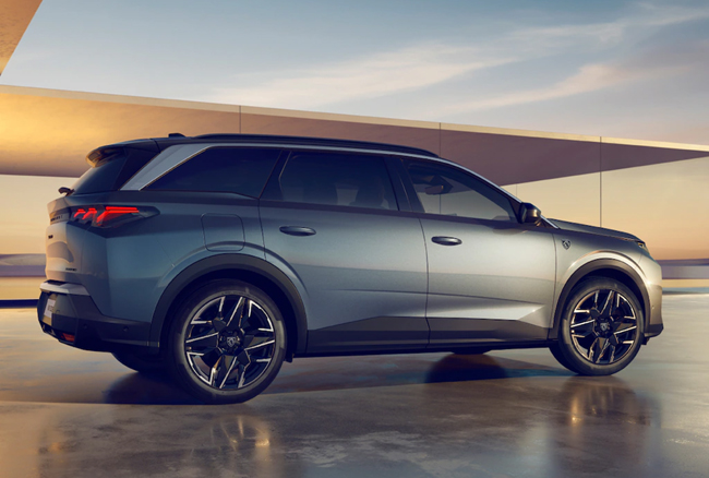 まずエクステリアは、流麗さと力強さを併せ持つロングボディ、先鋭的なシグネチャーライトを配した斬新なフロントビュー、内に広がる快適なスペースを物語る伸びやかなテールデザインなどを纏ったことがトピック。また、フロント部の超薄型ヘッドライトには走行状況に応じて照射範囲を自動で調整するマトリックスLEDテクノロジーを組み込む。一方でサイドビューは、広い後席とラゲッジ空間を備えたラージSUVならではのゆとりが感じられ、ルーフレールの装備によりアウトドアや荷物の積載などにも対応しやすい実用性を持ちながら、美しいラインを崩さずデザインに統一感を持たせた。足もとには、ブラック&シルバーの2トーンで仕上げた新デザインの19インチアロイホイール[YARI](タイヤは225/55R19サイズ)を装着する。そしてリアセクションは、3列シートに対応した高めの造形を採用し、7名乗りSUVとしての機能性を確保しながら、プジョーらしいスポーティかつ洗練された後ろ姿を創出した。ボディサイズは従来比で170mm長く、55mm幅広く、85mm高く、ホイールベースが60mm長い全長4810×全幅1895×全高1735mm/ホイールベース2900mmに設定。ボディカラーはインガロブルー、アルタンスグレー、オケナイトホワイト、ペルラネラブラックの計4色をラインアップしている。