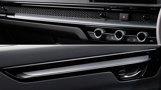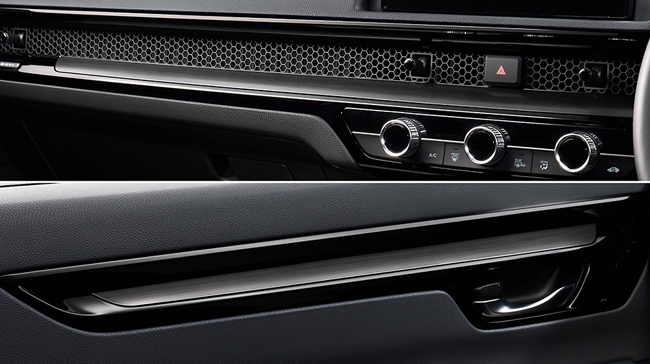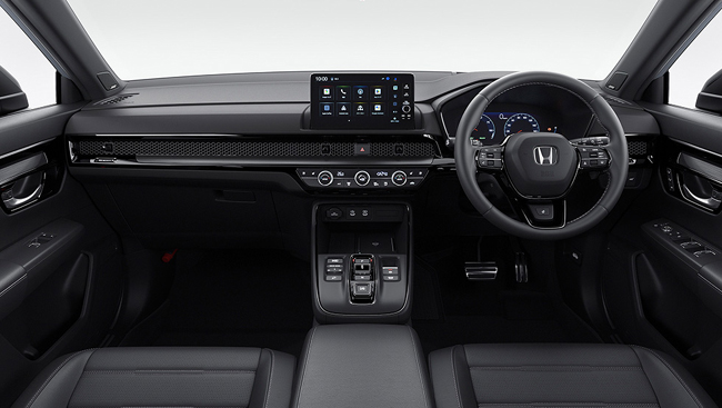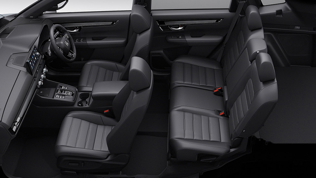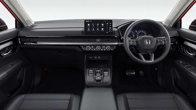 内包するインテリアは、シックなブラックの内装色をベースに、水平基調のインパネや直線的な加飾ラインなど、シャープな造形で仕立ててSUVらしい力強さや上質感を表現。また、インパネや前席のドアの加飾を車幅感覚および車両姿勢を把握しやすい位置にレイアウトすることで、視認性と操作性を向上させる。装備面では、キルティングを施した本革シートやスムースレザーの本革巻ステアリングホイール、白くやさしい光が室内を美しく演出するLEDアンビエントランプ(ルーフ/フット/ドアライニング/センターコンソールトレー/センターコンソールドリンクホルダー/フロントインナードアハンドル)、Google搭載9インチHonda CONNECTディスプレー、10.2インチのデジタルグラフィックメーター、インテリジェントデュアルフルオートエアコンディショナー(左右独立温度/GPS制御偏日射コントロール式)、Qi規格対応のワイヤレス充電器、USBジャック(Type-C/急速充電対応タイプ)およびUSBチャージャー(Type-C/急速充電対応タイプ)、静電タッチ式LEDルームランプ(リア左右席)、BOSEプレミアムサウンドシステム(12スピーカー)などを全車に標準装備。また、RS BLACK EDITION専用装備としてピアノブラックのステアリングロアーガーニッシュやヘアラインダークシルバー仕上げのインパネ&ドアライニングガーニッシュ、ブラックのルーフ&ピラーライニング、ヘッドアップディスプレー、電動パノラミックサンルーフ(チルトアップ機構付フロント電動スモークドガラス〈UVカット機能付プライバシーガラス〉)を、RS専用装備としてプラチナクロームメッキのステアリングロアーガーニッシュやヘアラインルバー仕上げのインパネ&ドアライニングガーニッシュ、グレーのルーフ&ピラーライニングを採用した。