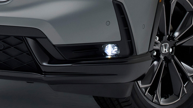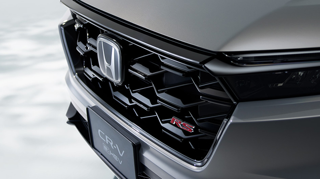 エクステリアについては、歴代CR-Vの先進的でスポーティなスタイルを受け継ぎつつ、よりSUVらしく力強いシルエットに進化させる。フードやピラーなどの水平基調のシンプルな造形の中に、力強さと洗練・上質・大人らしさを凝縮して表現。また、CR-Vの象徴である縦型リアコンビネーションランプを踏襲し、リッドランプやナンバープレートを上方に配置することで、上質感とどっしりとした安定感を演出した。ほかにも、ハニカムパターンに艶感のあるブラック塗装を施したフロントグリルや、ボディのワイド感を強調する薄型のフルLEDヘッドライト+LEDアクティブコーナリングライト+アダプティブドライビングビーム、フロントの表情にアクセントをあたえるLEDフォグライト、ボディとの一体感を高めたビルトインタイプのエキパイフィニッシャー、ブラックのルーフレールなどを全車に標準装備してホンダSUVならではのキャラクターを強調。また、RS BLACK EDITION専用装備としてクリスタルブラックパールのフロントバンパーロアーガーニッシュ/リアバンパーロアーガーニッシュ/アウタードアハンドル/ドアロアーガーニッシュ/フェンダーガーニッシュやベルリナブラック+ダーク切削クリアの19インチノイズリデューシングアルミホイール、専用“BLACK EDITION”エンブレムを、RS専用装備としてボディカラー同色のフロントバンパーロアーガーニッシュ/リアバンパーロアーガーニッシュ/アウタードアハンドル/ドアロアーガーニッシュ/フェンダーガーニッシュやベルリナブラック+切削クリアの19インチノイズリデューシングアルミホイールを組み込んで、それぞれの個性を際立たせている。ボディサイズは従来比で95mm長く、10mm幅広く、高さがほぼ同寸で、ホイールベースが40mm長い全長4700×全幅1865×全高1680~1690mm/ホイールベース2700mmに設定。ボディカラーはホンダ新色のブレイジングレッドパールとCR-V新色のスレートグレーパールのほか、クリスタルブラックパール、プラチナホワイトパール、キャニオンリバーブルーメタリックという計5色をラインアップしている。
